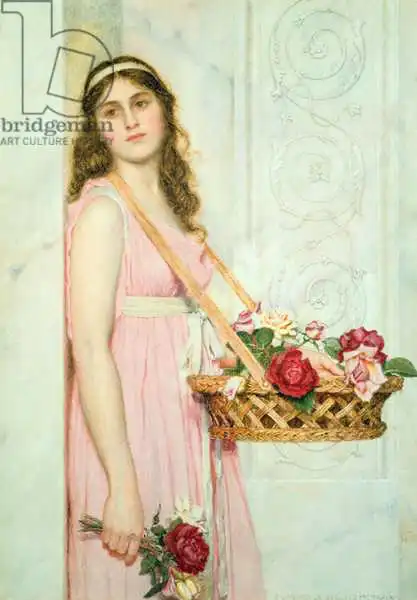 Bulleid painted picture The Flower Seller in 1929. Prevailing color of this fine art print is green and its shape is portrait. This art piece is located in a private collection This image is printed on demand - you can choose material, size and finishing.