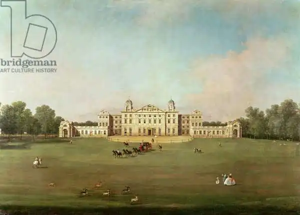private collection Canaletto painted picture Badminton House, Gloucestershire in 1754. Prevailing color of this fine art print is green and its shape is landscape. This art piece is located in a private collection This image is printed on demand - you can choose material, size and finishing.