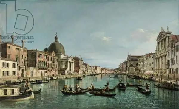 124.5 x 204.6 Canaletto painted picture The Grand Canal in Venice with San Simeone Piccolo and the Scalzi church, c. 1738 in 1738. Prevailing color of this fine art print is green and its shape is long. Original size is 124.5 x 204.6. This art piece is located in National Gallery, London, UK. This image is printed on demand - you can choose material, size and finishing.