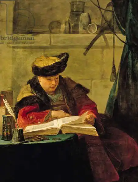 138 x 105 Chardin painted picture A Chemist in his Laboratory, or The Prompter, or A Philosopher giving a Lecture (Portrait of the painter Joseph Aved (1702-66) in 1734. Prevailing color of this fine art print is brown and its shape is portrait. Original size is 138 x 105. This art piece is located in Louvre, Paris, France. This image is printed on demand - you can choose material, size and finishing.