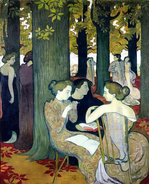 Denis painted picture The Muses in 1893. Prevailing color of this fine art print is green and its shape is portrait. Original size is 171 x 137. This art piece is located in Musee d'Orsay, Paris, France. This image is printed on demand - you can choose material, size and finishing.