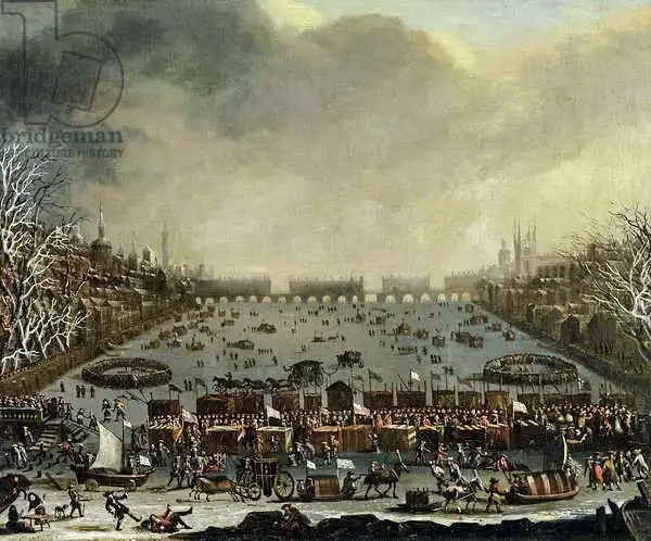 The Frost Fair of the winter of 1683-4 on the Thames, with Old London Bridge in the Distance