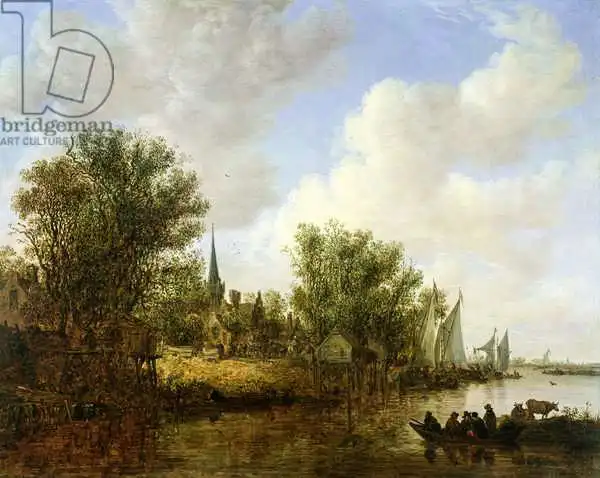 Goyen painted picture River scene with a View of Overschie in 1651. Prevailing color of this fine art print is green and its shape is landscape. Original size is 53.5 x 67. This art piece is located in a private collection This image is printed on demand - you can choose material, size and finishing.