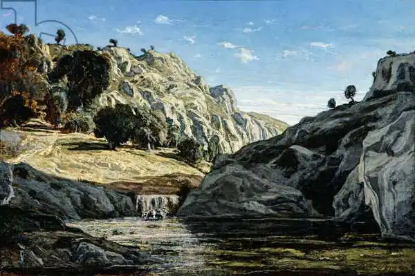 Guigou painted picture Memories of Ollioules gorge in 1861. Prevailing color of this fine art print is blue and its shape is landscape. This art piece is located in Musee de Picardie, Amiens, France. This image is printed on demand - you can choose material, size and finishing.