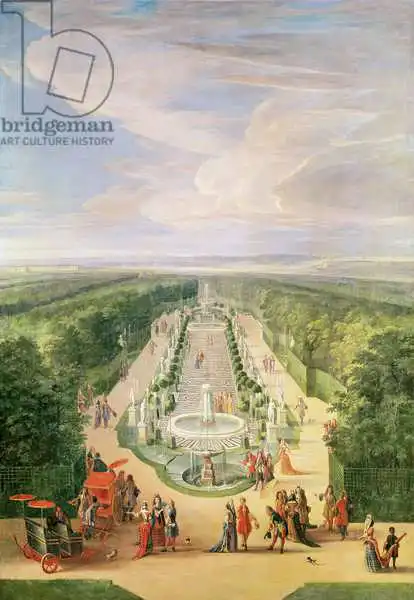 Martin painted picture Perspective View of the Grove from the Galerie des Antiques at Versailles in 1688. Prevailing color of this fine art print is green and its shape is portrait. Original size is 200 x 140. This art piece is located in Chateau du Grand Trianon, Versailles, France. This image is printed on demand - you can choose material, size and finishing.