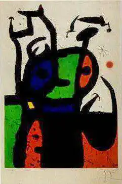 Joan Miró i Ferrà (1893-1983). Spanish (Catalonian) painter and sculptor. His paintings are considered surrealist. His approach attacks the traditional methodology (from the 1930s), which Miró considered bourgeois. He began making a living as an accountant, but quickly left behind the world of numbers and fully devoted himself to art. Gradually, he developed his symbolic language that he first used in the paintings The Tilled Field (1924) and Catalonia Landscape (1923). This language is used in most of his works. For example, he used the triangle shape to show the head, curves to show a moustache, and a rectangular shape to depict the trunk. As a surrealist, he often painted without a plan, with references to sexual symbols (for example, egg-like forms with penetrating wavy lines). As one of the first artists, he used auto painting. André Breton - the founder of surrealism - eventually described him as the purest surrealist of us all and he is considered an influential painter of the 20th century, who influenced mainly American expressionists (from the better known, for example Rothko Pollock or Motherwell and Calder).