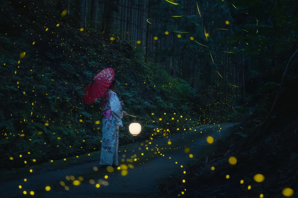 Japanese kimono and sea of fireflies