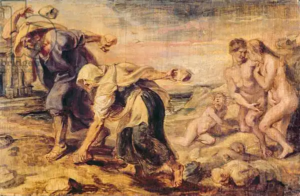 Deucalion and Pyrrha Repeople the World by Throwing Stones Behind Them