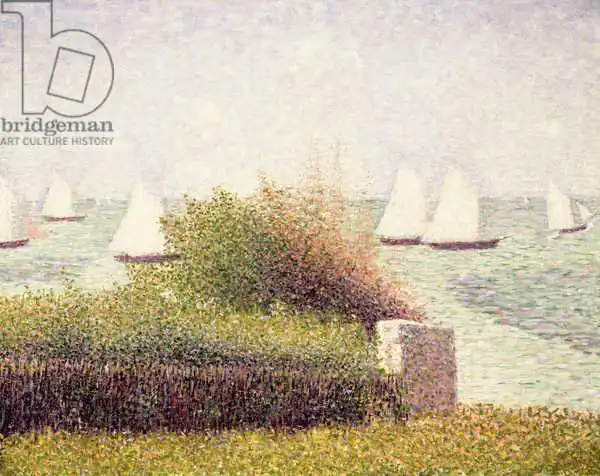 private collection Seurat painted picture La Rade de Grandcamp' in 1885. Prevailing color of this fine art print is b&W and its shape is landscape. This art piece is located in a private collection This image is printed on demand - you can choose material, size and finishing.
