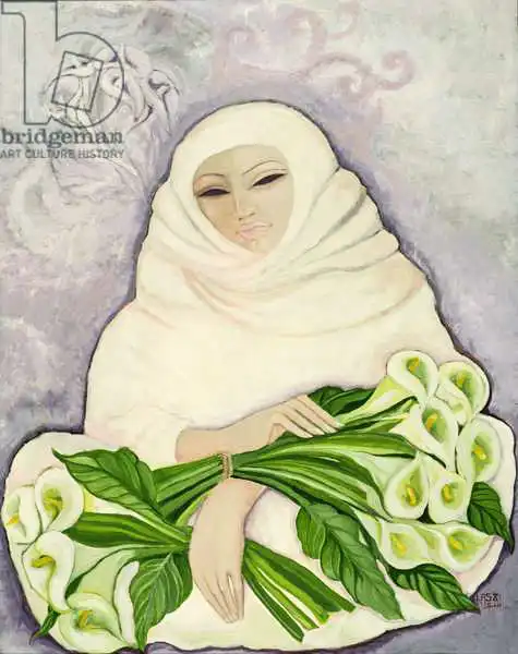 Shawa painted picture The Lily Seller in 1989. Prevailing color of this fine art print is b&W and its shape is portrait. Original size is 102 x 76. This art piece is located in a private collection This image is printed on demand - you can choose material, size and finishing.
