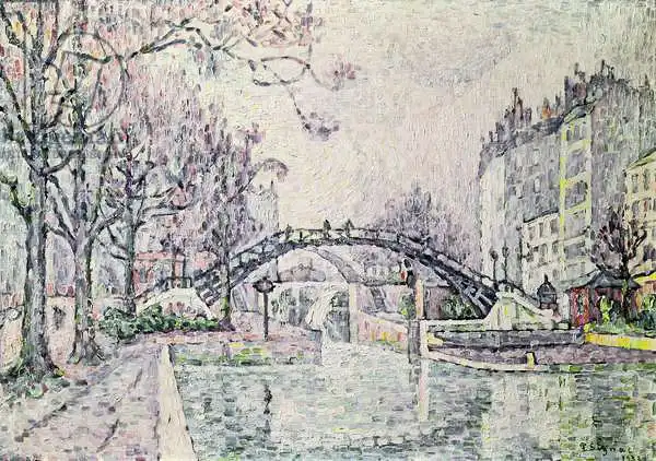 46 x 65 Signac painted picture The Canal Saint-Martin in 1933. Prevailing color of this fine art print is vivid and its shape is landscape. Original size is 46 x 65. This art piece is located in a private collection This image is printed on demand - you can choose material, size and finishing.