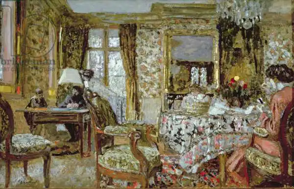 Two Seamstresses at Work, is complemented by richly decorated wallpaper and women’s dresses. Vuillard painted not only paintings, but also posters -