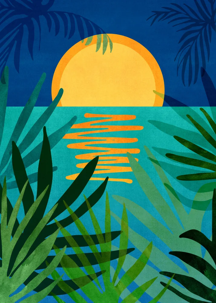 #kristian gallagher #nature and landscapes #illustration #graphic #palm #palm tree #palms #palm trees #tree #trees #exotic #tropical #tropcial #leaf #leaves #palm leaf #palm leaves #plant #plants #flowers and plants #botanical #botanicals #sky #light #dusk #twilight #evening #orange #color #yellow #green #tranquility #calm #still #serene #peace #peaceful #tranquil #tranquilitiy #stillness #harmony #outdoors #outside #abstract #abstraction #moon #night #moon mirror #reflection