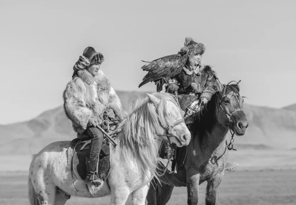 #horse #horses #animal #animals #equestrian #livestock #cattle #farmhouse #farm #farming #rural #countryside #group #landscape #desert #sand #sand dune #sand dunes #dune #dunes #mountain #mountains #ride #riding #rider #horse ride #horse riding #horse rider #person #people #action #outdoors #outside #eagle hunters #mongolian #monlogia #bw #black and white #monochrome #eagle #eagles #bird #birds
