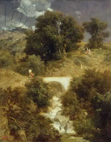 44.5 x 35 Böcklin painted picture Roman Landscape with a Bridge in 1863. Prevailing color of this fine art print is green and its shape is portrait. Original size is 44.5 x 35. This art piece is located in Hamburger Kunsthalle, Hamburg, Germany. This image is printed on demand - you can choose material, size and finishing.