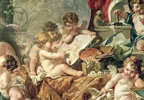 350 x 320 Boucher painted picture Genius Teaching the Arts, 1761 (detail) in 1761. Prevailing color of this fine art print is green and its shape is landscape. Original size is 350 x 320. This art piece is located in Musee des Beaux-Arts, Angers, France. This image is printed on demand - you can choose material, size and finishing.