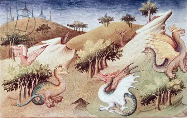 Boucicaut Master,: Ms Fr 2810 f.55v, Dragons and other beasts, from