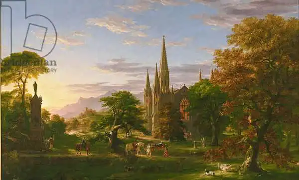 Romantic period. He born in England, but at age 17, his family emigrated to the United States. His father sold wallpaper. Cole travelled around Ohio and painted mainly portraits, with which he earned money. On the way to New York, he went on a trip down the Hudson River. He created a series of sketches of the mountains and surrounding nature, which were later transferred to the image