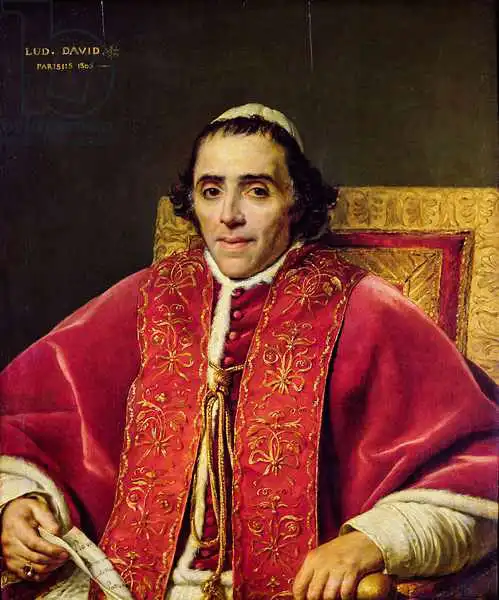 86.5 x 71.5 David painted picture Portrait of Pope Pius VII (1742-1823) in 1805. Prevailing color of this fine art print is red and its shape is portrait. Original size is 86.5 x 71.5. This art piece is located in Louvre, Paris, France. This image is printed on demand - you can choose material, size and finishing.