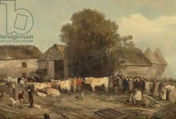 Davis painted picture The Farm Sale in 1820. Prevailing color of this fine art print is green and its shape is landscape. Original size is 71.7 x 104.1. This art piece is located in Yale Center for British Art, Paul Mellon Collection, USA. This image is printed on demand - you can choose material, size and finishing.
