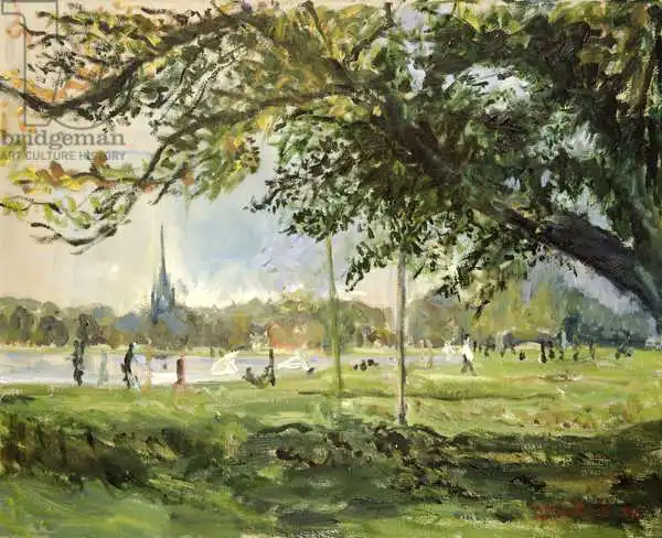 Espir painted picture End of Summer in 1994. Prevailing color of this fine art print is green and its shape is landscape. Original size is 51 x 61. This art piece is located in a private collection This image is printed on demand - you can choose material, size and finishing.