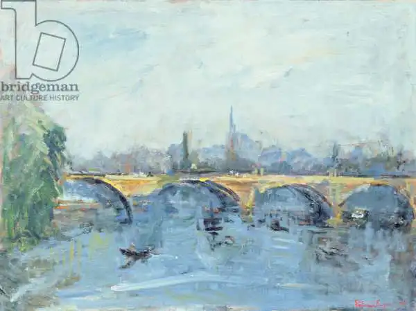 Espir painted picture The Serpentine Bridge, London in 1996. Prevailing color of this fine art print is blue and its shape is landscape. This art piece is located in a private collection This image is printed on demand - you can choose material, size and finishing.
