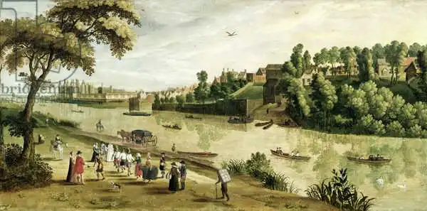 Flemish school (17th century): The Thames at Richmond, with the Old Royal Palace