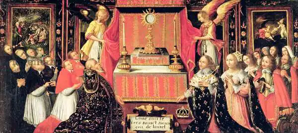 Louis XIII (1601-43) Anne of Austria (1601-66) Infanta of Spain and Gaston de France (1608-60) Duke of Orleans before the Holy Sacrament