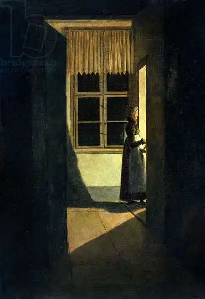 71 x 49 Friedrich painted picture The Woman with the Candlestick in 1825. Prevailing color of this fine art print is dark and its shape is portrait. Original size is 71 x 49. This art piece is located in On Loan to the Hamburg Kunsthalle, Hamburg, Germany. This image is printed on demand - you can choose material, size and finishing.