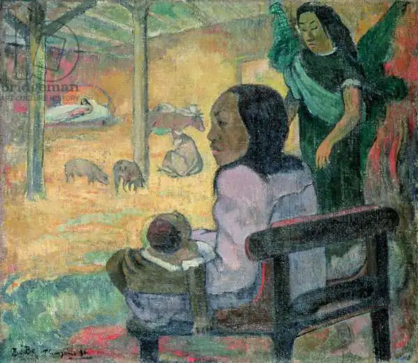 66 x 75 Gauguin painted picture Be Be (The Nativity) in 1896. Prevailing color of this fine art print is green and its shape is landscape. Original size is 66 x 75. This art piece is located in Hermitage, Sant Peterburg, Russia. This image is printed on demand - you can choose material, size and finishing.
