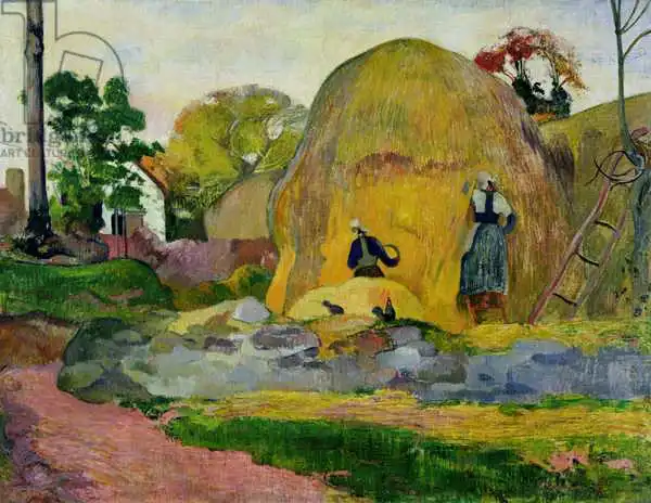 73.5 x 92.5 Gauguin painted picture Yellow Haystacks, or Golden Harvest in 1889. Prevailing color of this fine art print is green and its shape is landscape. Original size is 73.5 x 92.5. This art piece is located in Musee d'Orsay, Paris, France. This image is printed on demand - you can choose material, size and finishing.