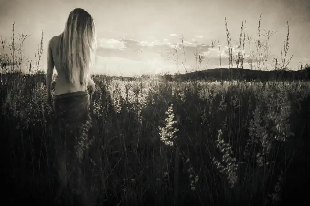 #model #creative edit #behind #back #summer #field #backlight #hair #grass #meadow #sepia