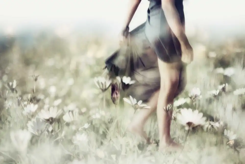 #creative edit #meadow #flower #flowers #summer #dress #woman #painterly #walk #walking #separation #soft #desaturation #bokeh #free #freedom