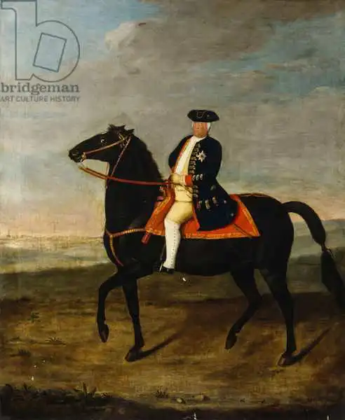 German School: King Frederick William I on Horseback with Potsdam in the background