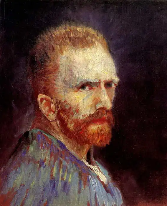 Parisian Impressionists He lived in Paris from 1886 and was influenced by the use of bright colours - most of his works were painted during this period. In his paintings, Gogh uses contrasting colours (often blue and orange - he said that I want to use colours other contrasts to each of them shone even more to contrast a man and a woman). He was known for his excesses and amputated an ear after the break-up of his friendship with