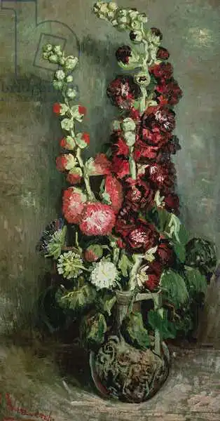 91 x 50.5 Gogh painted picture Vase of Hollyhocks in 1886. Prevailing color of this fine art print is green and its shape is portrait. Original size is 91 x 50.5. This art piece is located in Kunsthaus, Zurich, Switzerland. This image is printed on demand - you can choose material, size and finishing.