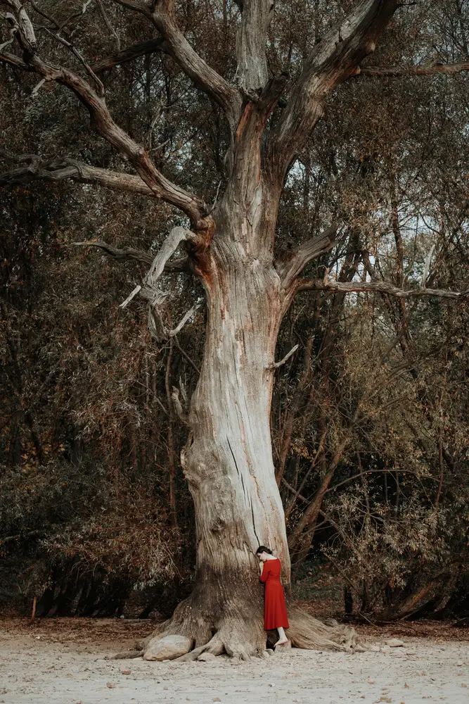 #tree #trees #woman #girl #outside #outdoors #portrait #person #woman in red #red #people #figurative