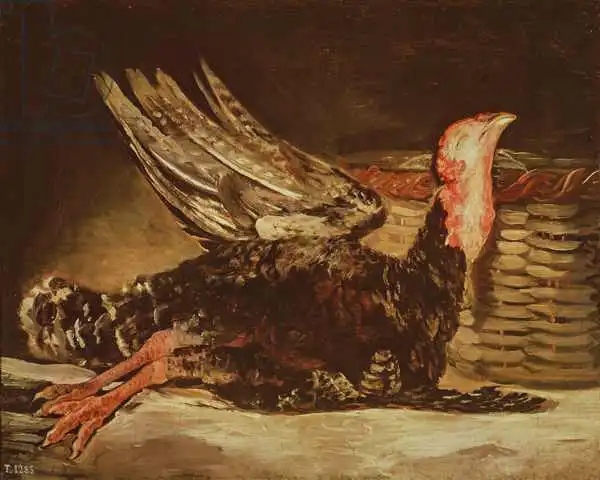 Still Life of a dead turkey and a wicker basket