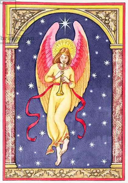 Hamer painted picture Herald Angel in 1996. Prevailing color of this fine art print is blue and its shape is portrait. This art piece is located in a private collection This image is printed on demand - you can choose material, size and finishing.