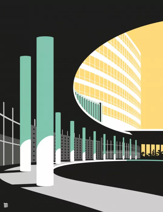 2844129,BUILDING,ART,DESIGN,ILLUSTRATION,ARCHITECTURE,MID CENTURY MODERN,MIAMI MODERN,ART DECO,MIAMI BEACH,HOTEL,LUXURIOUS,GREEN,BLACK,YELLOW,SUNSHINE,SHADOWS,FLAT DESIGN,LOVE,PLACES,BUILDINGS,GRAPHIC,MIAMI,FLORIDA,US,USA,UNITED STATES,AMERICA,SUNLIGHT,LIGHT