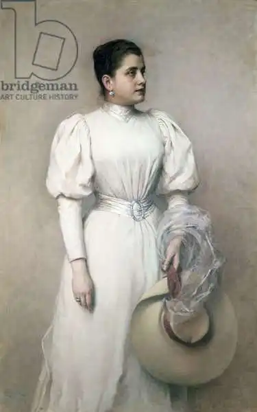 Horovitz painted picture Marie Renard, opera singer with the Hof Opera and wife of Kinsky in 1893. Prevailing color of this fine art print is green and its shape is portrait. This art piece is located in Wien Museum Karlsplatz, Vienna, Austria. This image is printed on demand - you can choose material, size and finishing.