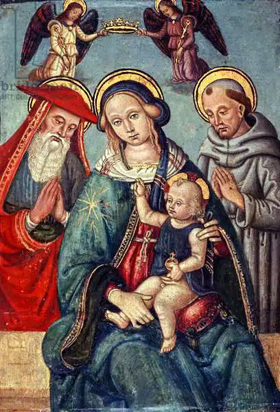 Madonna and Child being crowned by two Angels, with St. Jerome and St. Francis