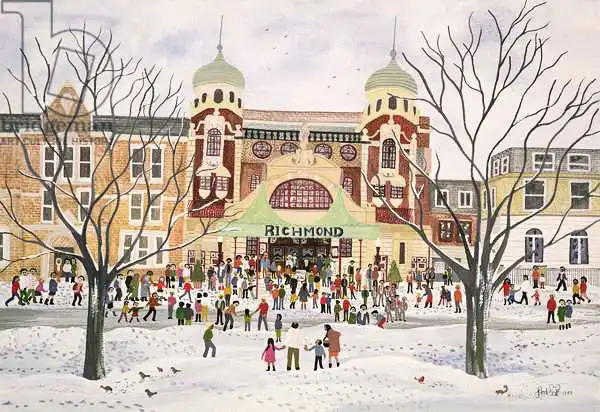 Joel painted picture Richmond Theatre, Surrey in 1988. Prevailing color of this fine art print is b&W and its shape is landscape. This art piece is located in a private collection This image is printed on demand - you can choose material, size and finishing.