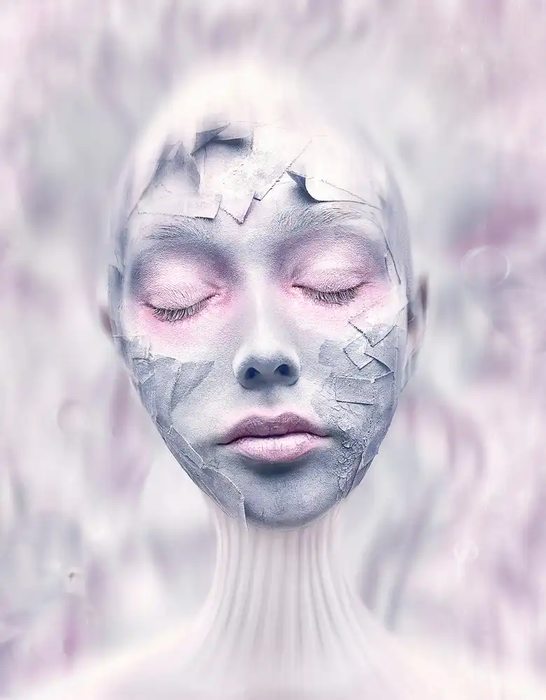#portrait #studio #people #color #face #head #pastel #pink #creative edit #closed eyes #bokeh #make up #face paint