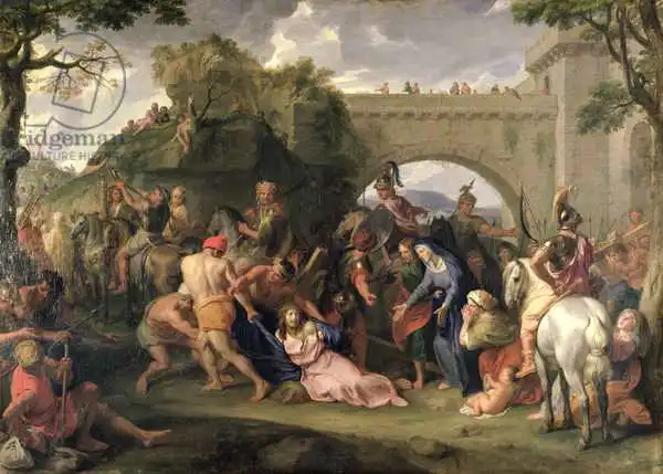 Le Brun painted picture Christ Carrying the Cross in 1688. Prevailing color of this fine art print is green and its shape is landscape. Original size is 153 x 214. This art piece is located in Louvre, Paris, France. This image is printed on demand - you can choose material, size and finishing.