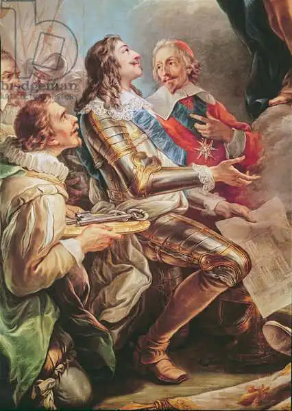 Loo, Carle Van: Louis XIII (1601-43) dedicating the Church of Notre-Dame-des-Victoires to the Virgin in 1629, detail of Louis XIII and Cardinal Richelieu (1581-1642) 1748-53