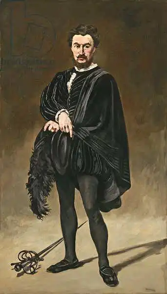187.2 x 108.1 Manet painted picture The Tragedian Actor (Rouviere as Hamlet) in 1866. Prevailing color of this fine art print is green and its shape is portrait. Original size is 187.2 x 108.1. This art piece is located in National Gallery of Art, Washington DC, USA. This image is printed on demand - you can choose material, size and finishing.