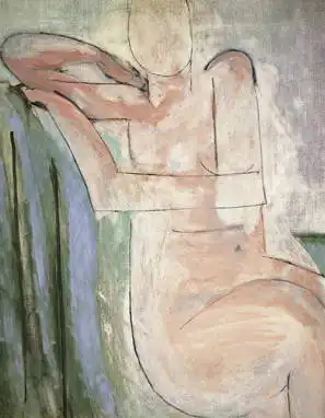 A Nude from the cycle Blue Nudes. Figures in the paintings are conceived as sculptures - Mattise achieved great expressiveness through excellent distribution of mass in the image and clarity of the image. He proved to his audience that, despite the great frugality of the means of expression, one can achieve excellent results even with something as sensitive as the female nude.