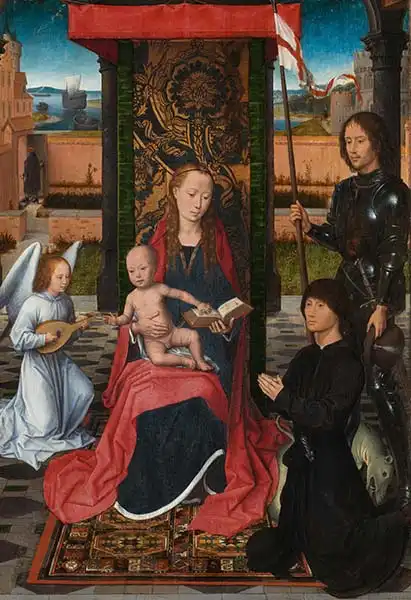 Memling, Hans: Madonna and Child, St. George, angel and donator