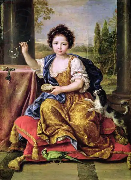 Mignard, Nicolas: Marie-Anne de Bourbon (1666-1739) Mademoiselle de Blois, Blowing Soap Bubbles